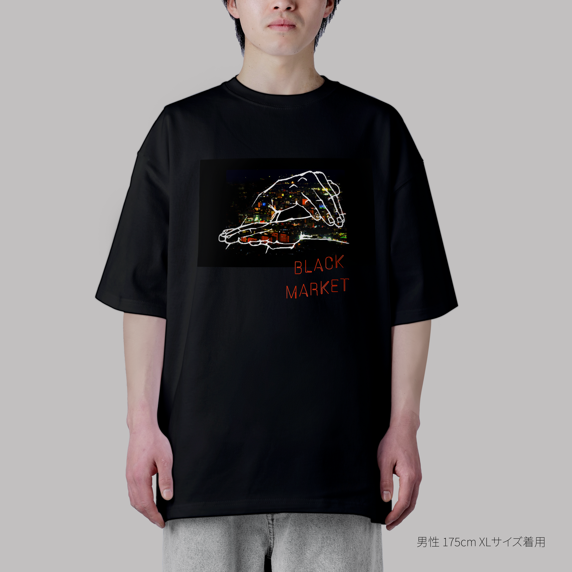 5.6oz Big silhouette TEE “BLACK MARKET”